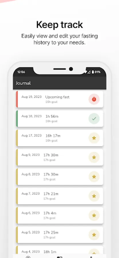 - Comprehensive fasting history: Keep a record of your past fasts for easy reference