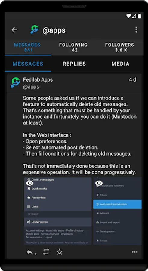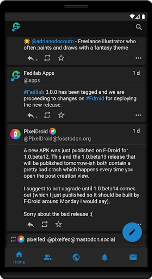 Fedilab is a multifunctional Android client to access the distributed Fediverse, consisting of micro blogging, photo sharing and video hosting.
