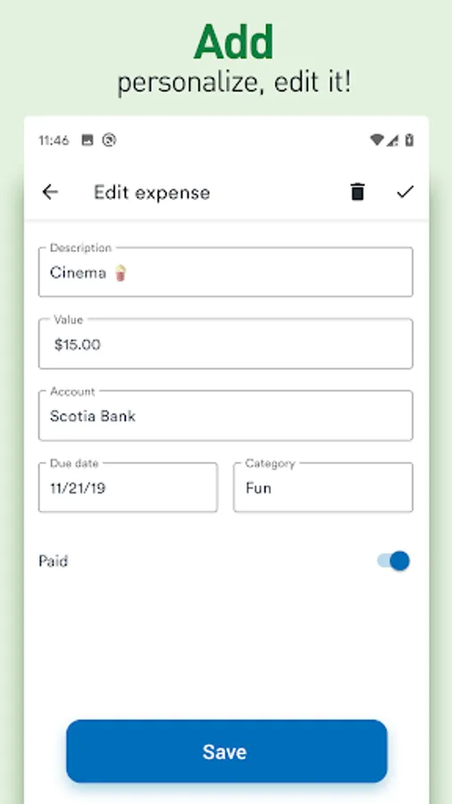 - Track expenses and incomes: Register daily your transactions, and check how it goes by the end of the month;