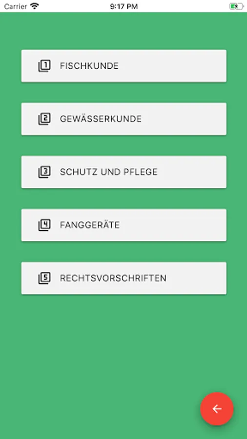 The app includes all exam and picture questions from the official questionnaire of the LfULG-Saxony.