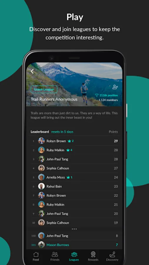 2. Get Active - Challenge and compete with friends, colleagues, and people around the world in the activity league of your choice. Any effort counts: