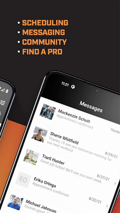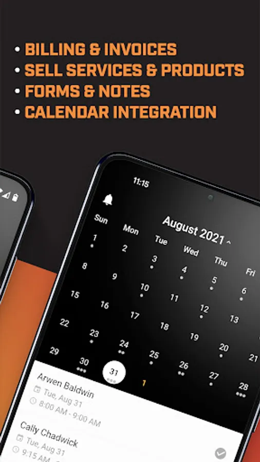 Easily keep track of client training sessions + meetings with our calendar function. Utilize our two-way messaging for last-minute questions and updates.