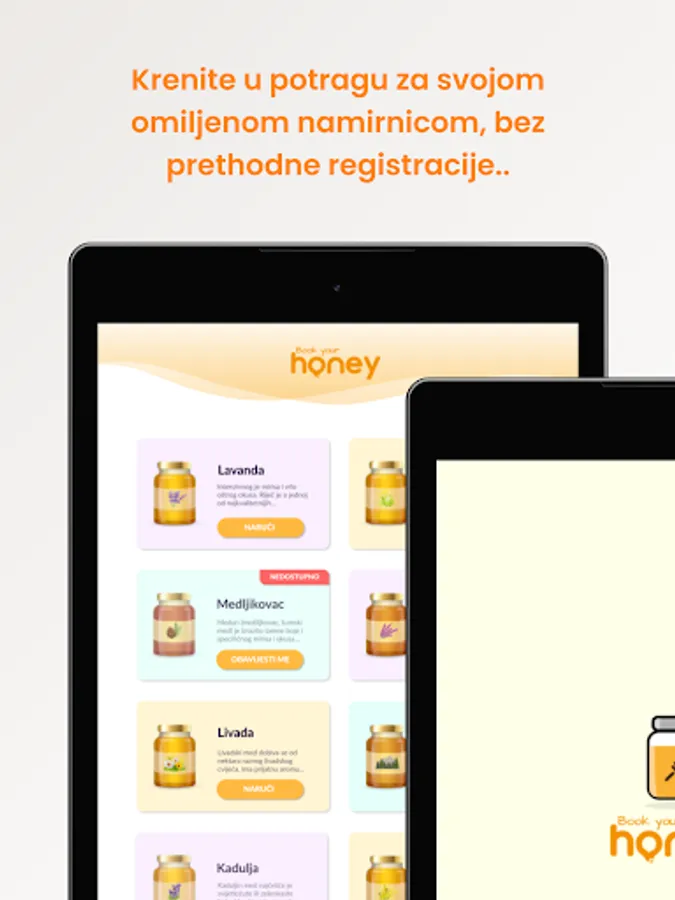 The Book Your Honey application enables the protection of consumers from products of dubious origin and ensures the purchase of only quality and real honey. Cooperation with beekeepers who produce quality domestic honey and with an authorized laboratory for honey analysis is what makes this application unique and safe for consumers. The results of the analysis are available to all users so that they know when buying that it is a 100% tested and quality product. You no longer have to worry about checking and analyzing honey, with the Book Your Honey app you can just enjoy all the benefits of real honey!