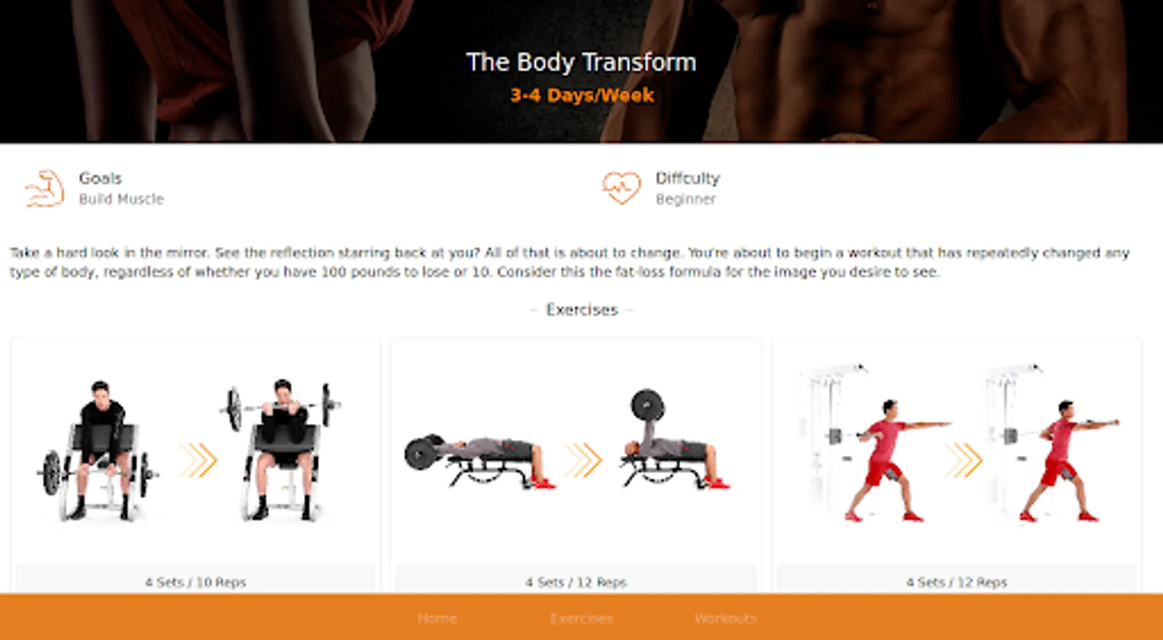 Personal trainer for everyone - diets and exercise for everyone. Individual workouts for all types of muscle groups, individual healthy diet tips on base your age and body type! Achieve your dream body shape with Personal trainer for everyone!