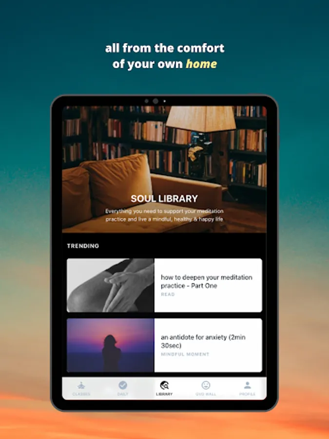 We do this through our live, guided meditation classes led by some of Australia's top meditation teachers. You also receive our Daily Mindful Moments, which have been designed to make it easy for you to learn and live mindfully and lastly, full access to the Soul Library! A place staked full of guided meditations, breathing exercises, mindfulness tips, tricks, articles. Plus some soothing sounds of nature to listen to at any time. Everything you need to squeeze the most out of life!
