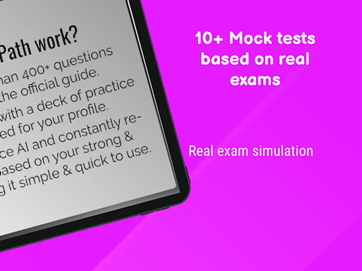 All you need to do is keep swiping and our learning algorithm takes care of the rest. This makes learning not only quick but simple and fun. You will be ready for your test in no time. Our app is designed to adapt to your learning style and provide you with quick and simple practice tests to help you succeed. With our app, you'll be able to easily identify your strengths and weaknesses, thanks to our advanced AI algorithm.