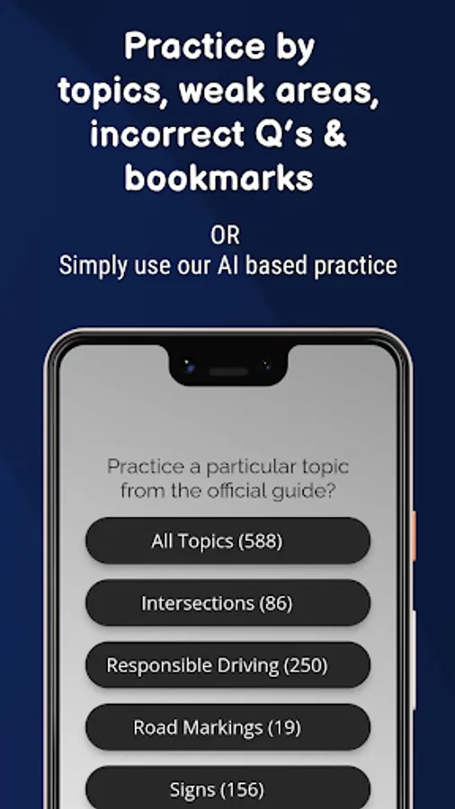 Whether you're a new driver or just need a refresher, our driving test practice app with personalized AI learning is the perfect tool to help you pass your test with ease. Download now and start studying!