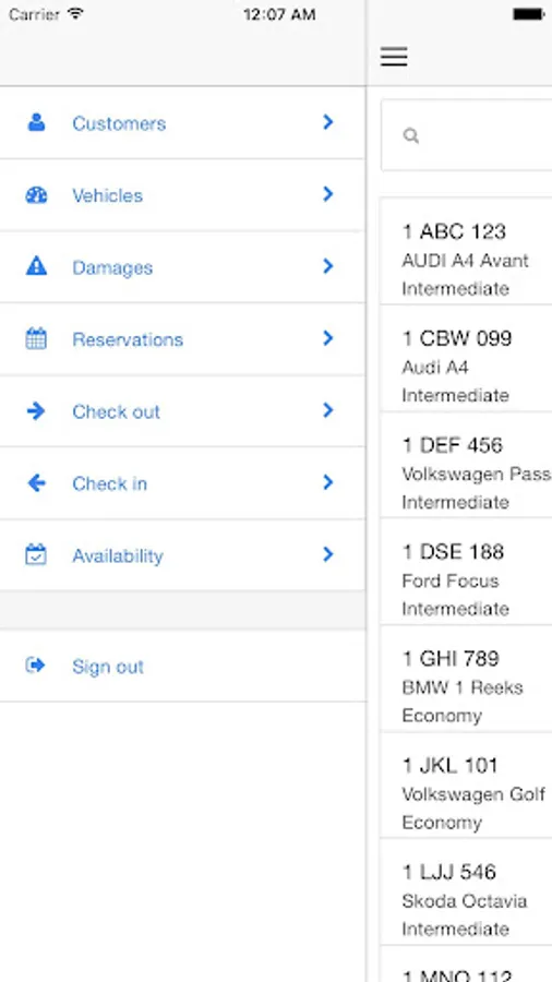 Mobile fleet management application by FleetMaster which enables rental companies to quickly perform check-out and check-in procedures. Next to that the app offers functionality to get information on customers, vehicles and their current damage state as well as give an insight in the availability of the fleet, with an option to quickly add a new reservation.