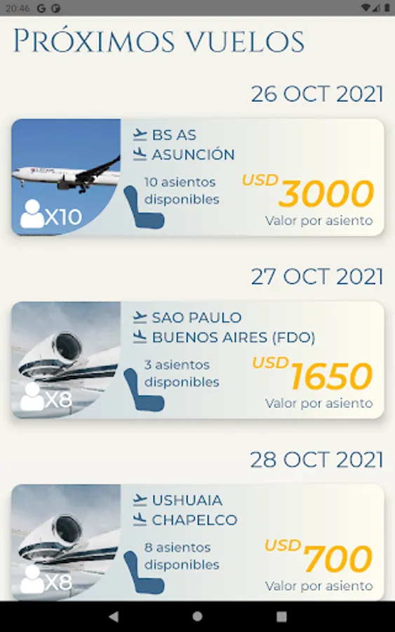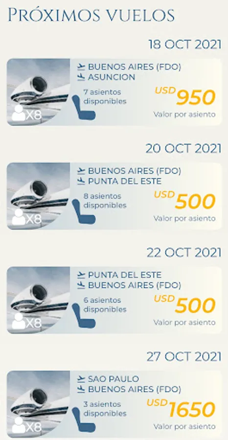 Take your mobile and find the best option that suits your flight needs. From a simple flight Buenos Aires - Punta del Este, to enjoy a weekend with family or friends, to a Córdoba - San Pablo for business.