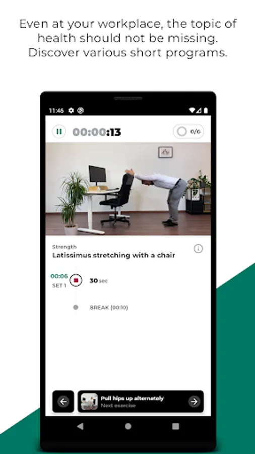 Do you often have back pain after sitting long hours? Do you sometimes lose track of things because of stress and can no longer focus? Do your eyes and head hurt from constantly staring at the screen? kinastic Coach shows you how you can make good use of short breaks during working hours and do something for your health. Discover a variety of short exercises in the areas of mobilization, stretching, breathing and relaxation.