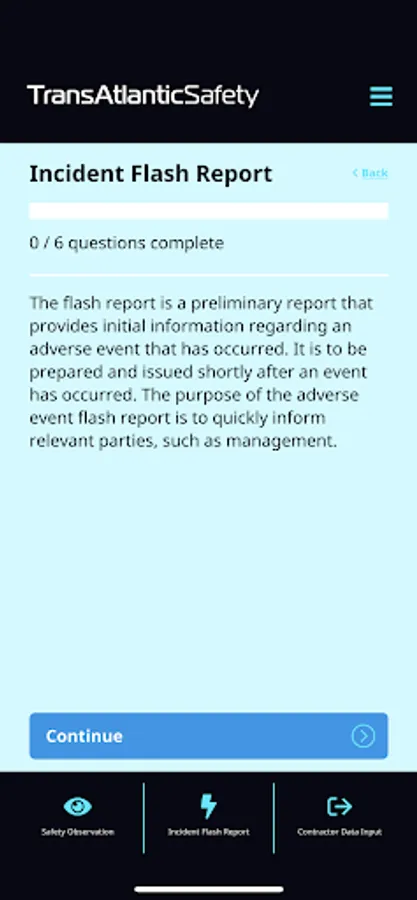 Observations – HSE professionals, project management and project supervision are given their own profiles and access to the TransAtlantic Safety App. Through this app operatives make HSE related observations.