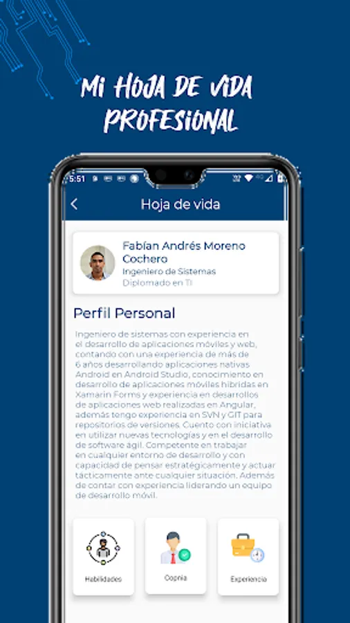 This application is my work and personal resume, as well as a sample of my work as an Android developer.