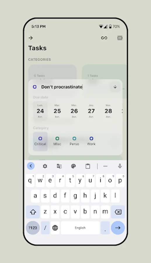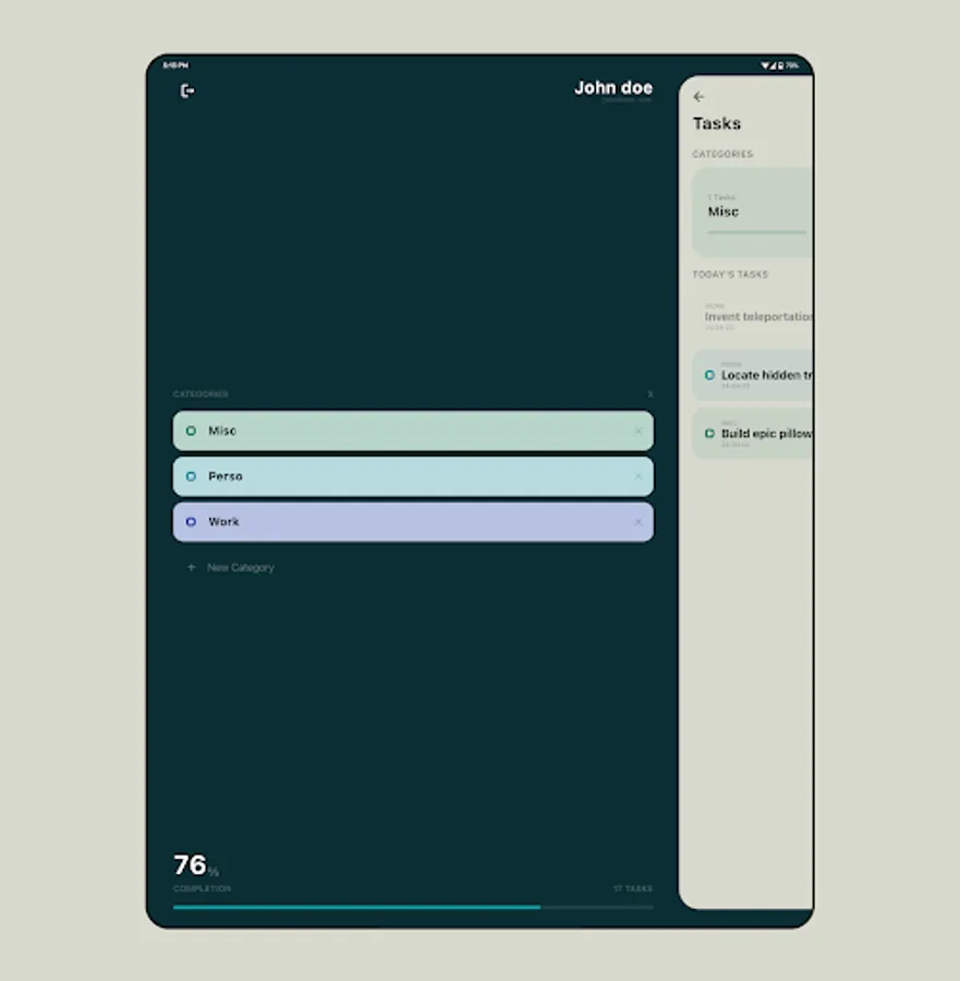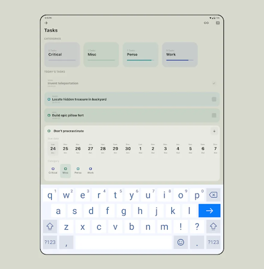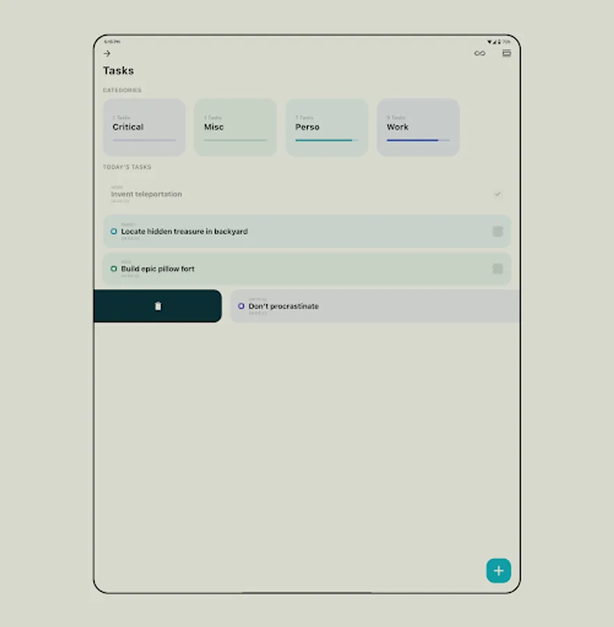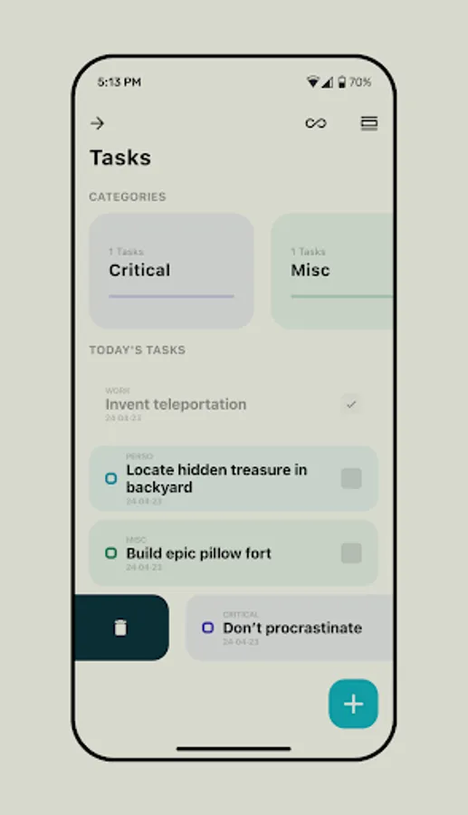 Flexible Task Organization: Create, edit, and organize your tasks with ease. Focet allows you to sort your tasks into user-created categories, providing a personalized and efficient way to manage your daily responsibilities.