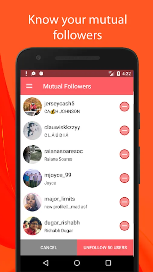 With Unfollow for Instagram, you can easily find a list of all users who do not follow your account on instagram but whom you follow. While tracking non-followers, the app also lets you unfollow these users. You can either unfollow a single user or unfollow multiple users. So, if you are asking yourself - Who unfollowed me on instagram?, just start using this Unfollow for Instagram to find out who unfollowed you. This app does not increase your followers on instagram. It only tracks users who do not follow you back on instagram and allows you to unfollow them.