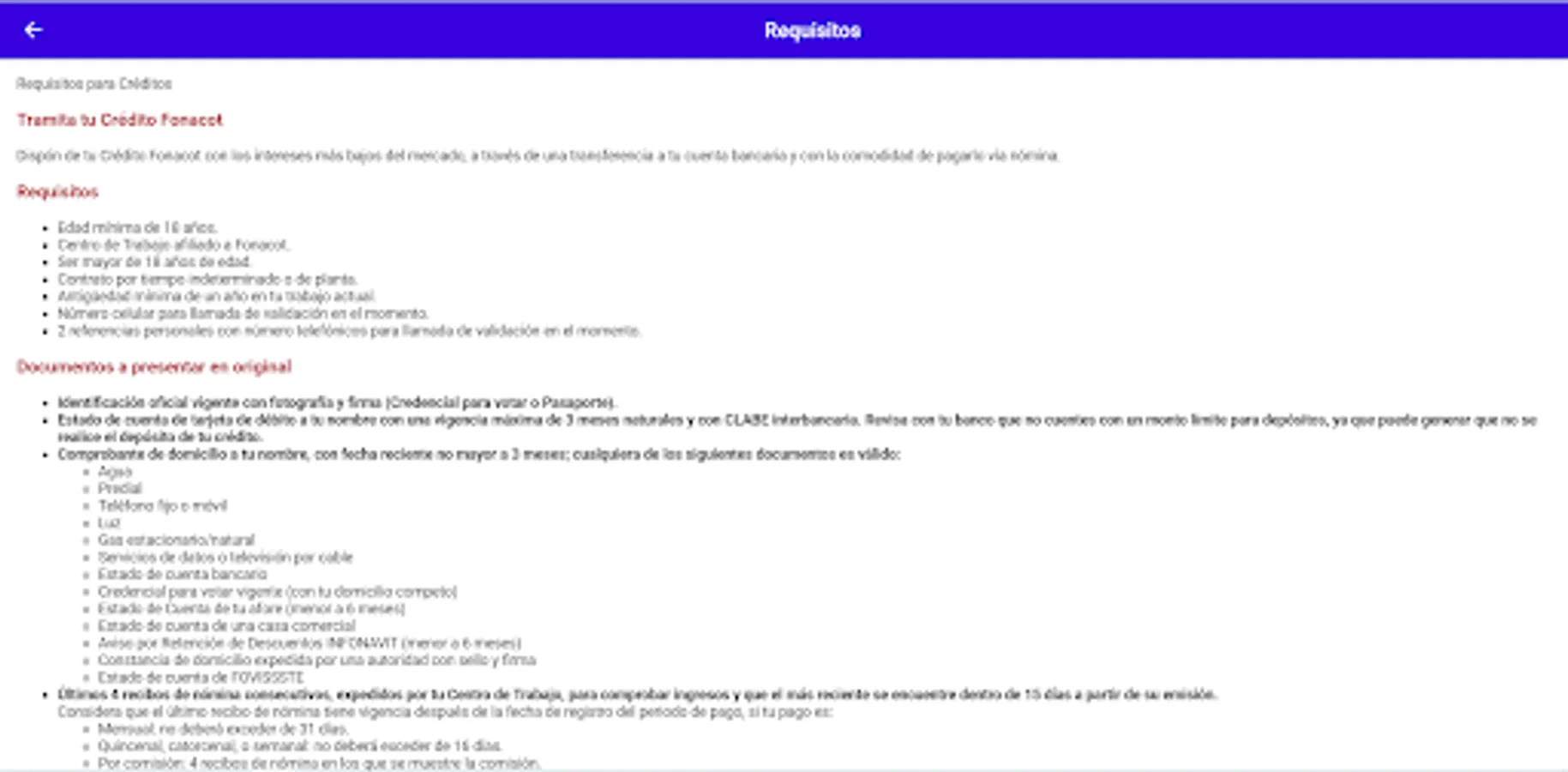 Discharge of responsibility: This application is only informative and has no relationship with the Fonacot Institute, all the information provided here is public and it can be accessed on the website https://www.fonacot.gob.mx/