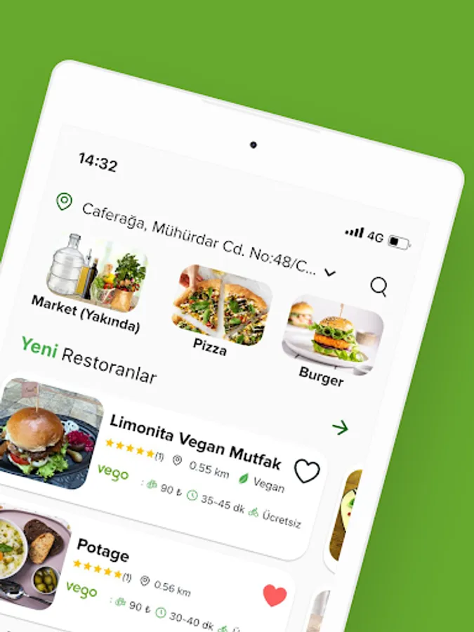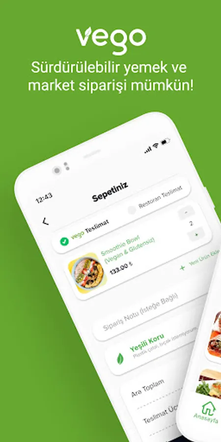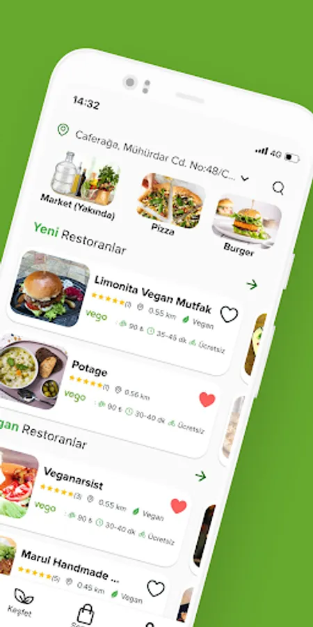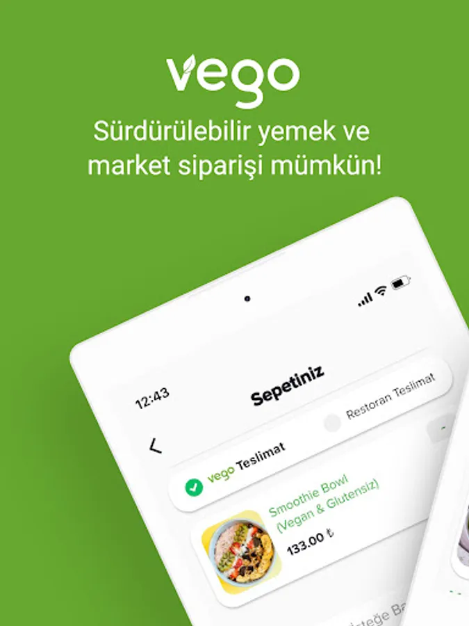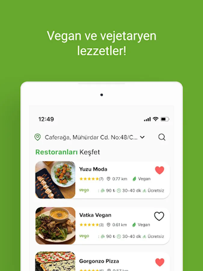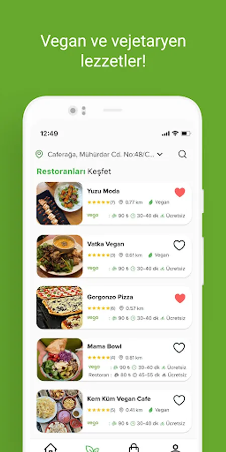 With Vego, place your order from restaurants with vegan & vegetarian menus around you, and we will deliver it to your address within minutes! Moreover, with our bicycle and electric vehicle options, with zero carbon emissions and with our sustainable packaging system, leaving the least trace in nature.
