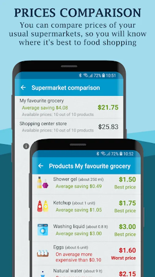 You can manage your favorite supermarkets and compare product prices between supermarkets. You just need to add prices of the products while you are shopping, and Foodder will do the rest: after some shoppings, you will clearly see which supermarket is the most convenient for the products you have to buy.