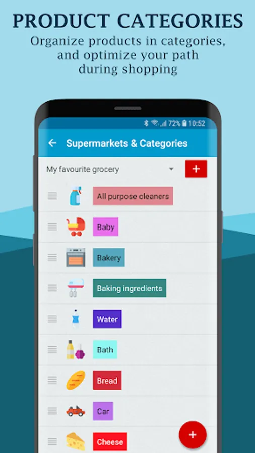 - List of supermarkets with customization of the ordering of categories