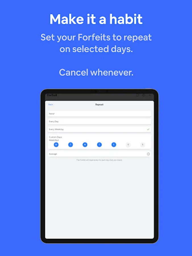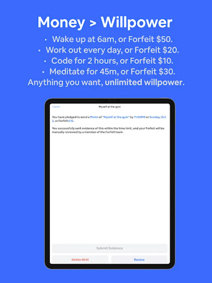 Based off the Habit Contract methodology explained in Atomic Habits, Forfeit is pretty much bulletproof at forcing you to complete the habits that are tough to motivate yourself to do.