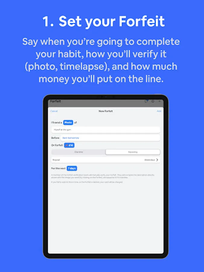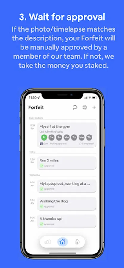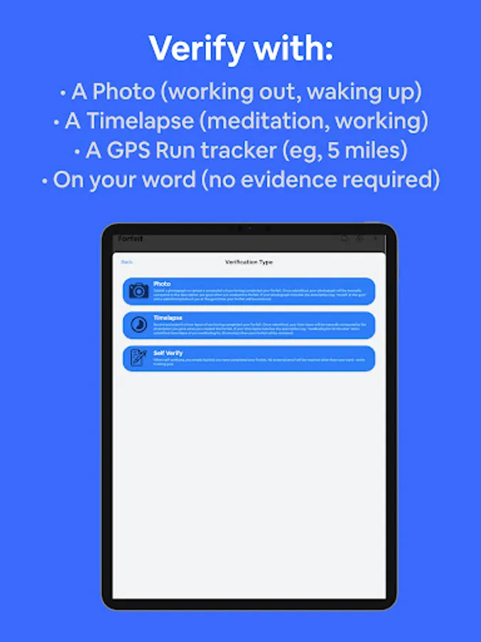 MANUAL VERIFICATION: Our team manically verifies your forfeits - no need for an accountability buddy.