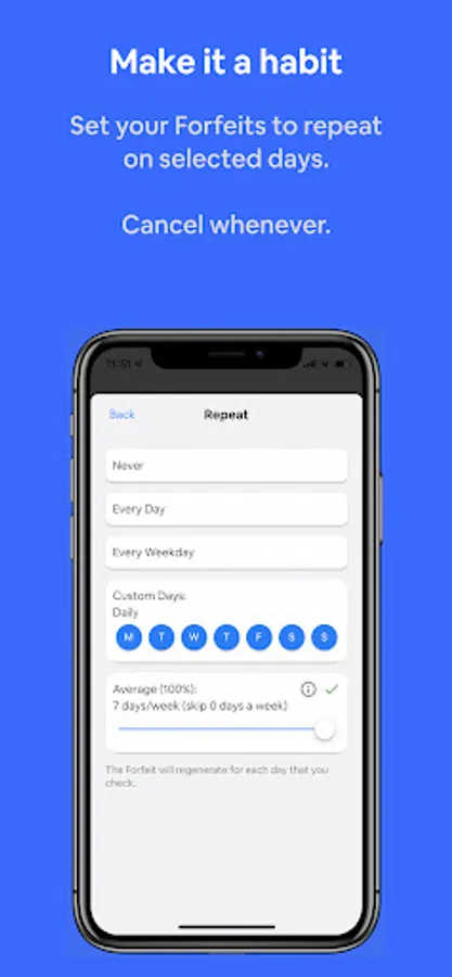 RECURRING FORFEITS: Set forfeits to regenerate for up to 90 days, on any specific set of days that you want.