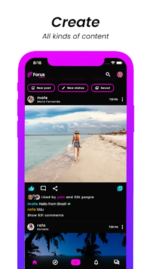 Create your world, customize like never before and explore a totally free social network with incredible content. Welcome to Forus.