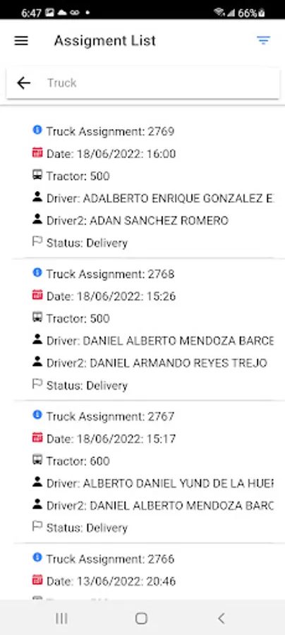 Truck Assignments Screenshots