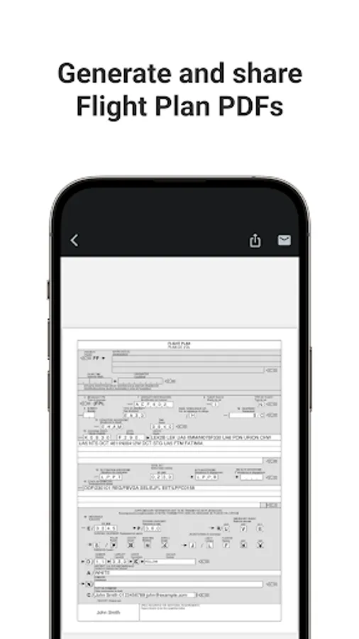 The app will generate an ICAO flight plan PDF which you can then review and send to the adequate ATS via email.