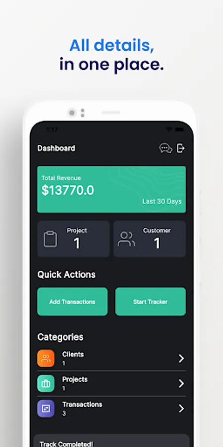 Work on Upwork, Fiverr, Freelancer, Toptal or any other freelancing platform - doesn’t matter! Grow your freelance business faster and manage tasks on-the-go. Handle your incomes & expenses via our transaction management, and do client relationship management and project management anytime and anywhere.