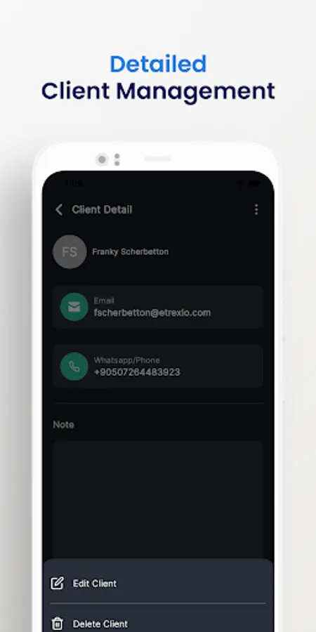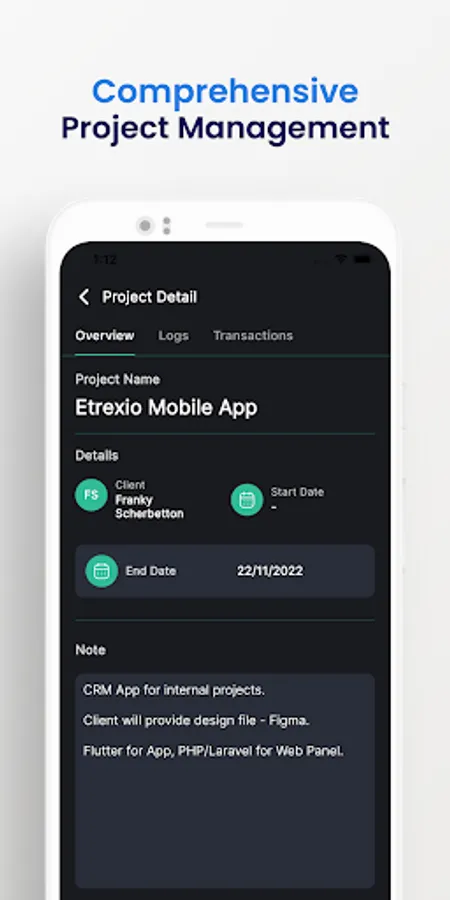 You can manage your clients, transactions, notes and projects for work management tailored to your needs as a freelancer or small business team.