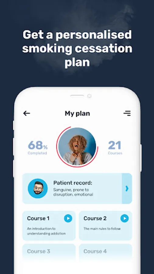As you progress through the course, you will see how quitting smoking affects your health every day. Each new stage of the course completed, together with your personal mentor, will guide you towards your goal of quitting nicotine altogether.