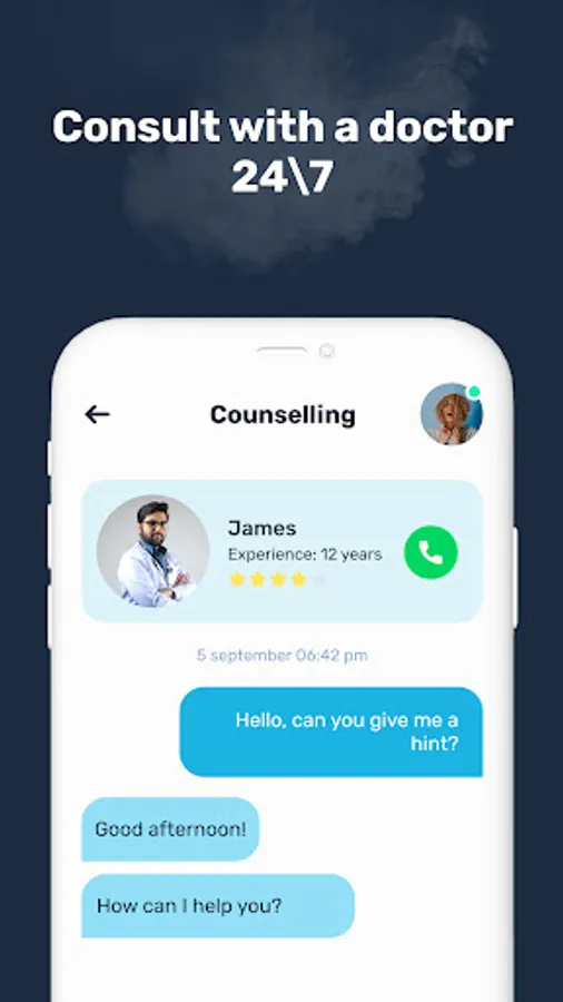 24/7 counselling - we are available to answer your questions at any time. Afraid of quitting? Ask a mentor. By how much will your tobacco consumption be reduced each day - ask a mentor. What tobacco will be substituted with? Ask the mentor.