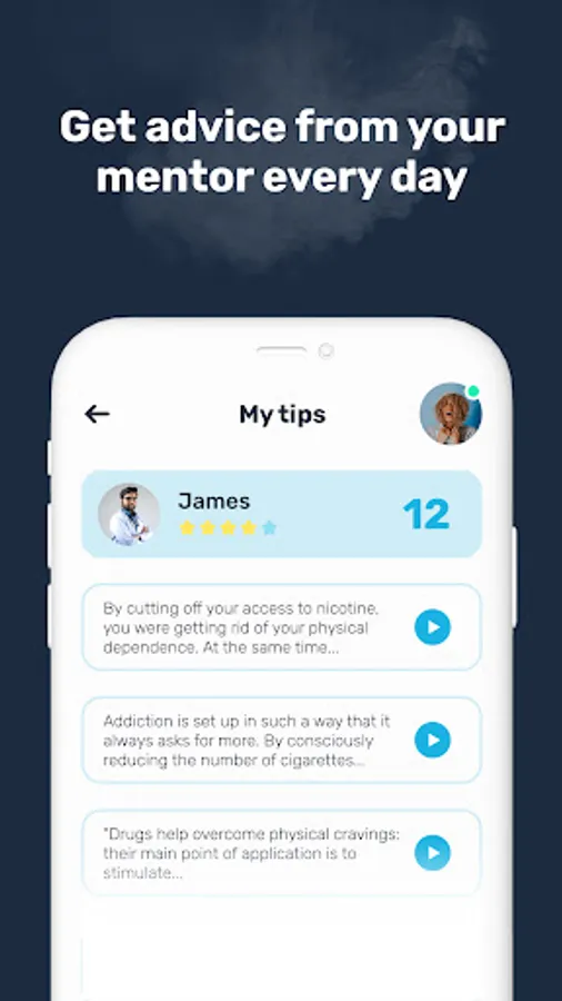 Mentor tips - get personalised and helpful tips from your mentor to help you quit smoking quicker and easier.