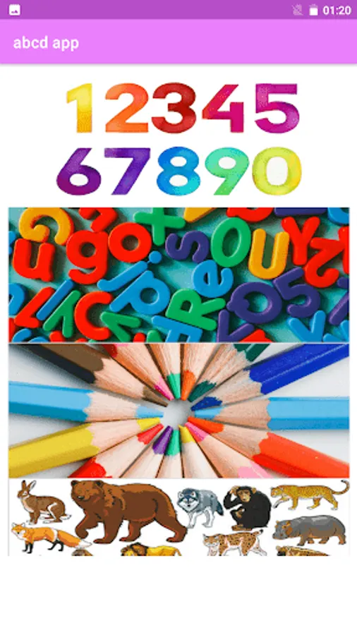 In this application your kids will learn Alphabets, Numbers, Shapes, Colors, Animals and more.