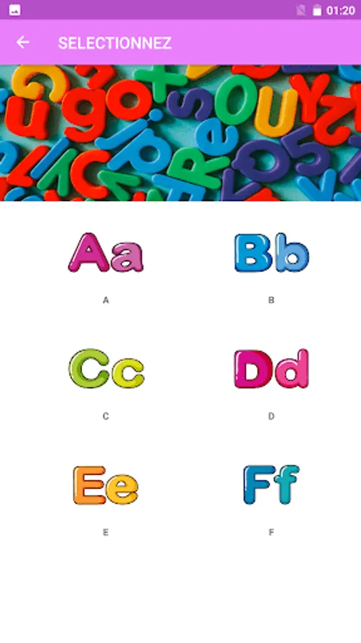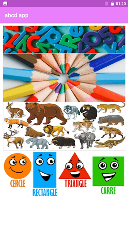 Enjoy using our educationnal app ABC French Alphabet for Kids to help your kid grab french vocabulary easily specially : the french alphabet abc...z, numbers 0123...9, shapes (carre, cercle, rectangle...), colors (rouge, jaune, orange, ...).
