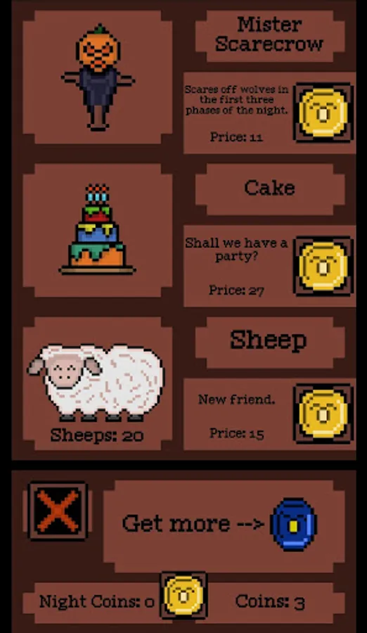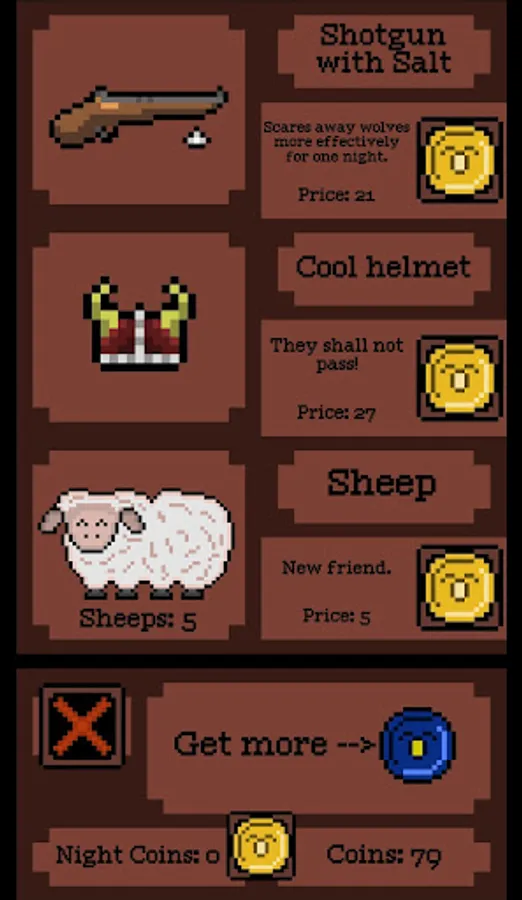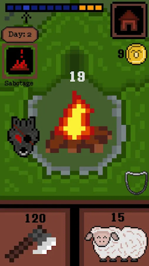 Every day is a random event that complicates or facilitates the game. The more firewood you get, the more useful things and sheep you can buy from the merchant in the morning. Protect your flock and grow it to its maximum size!