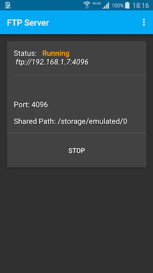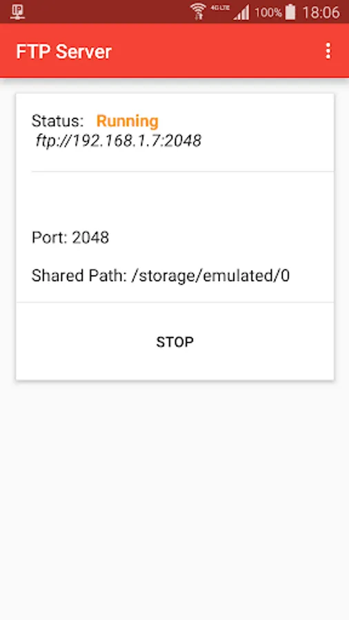 + When status is Running, got ftp server address, default is ftp://192.168.1.7:2048