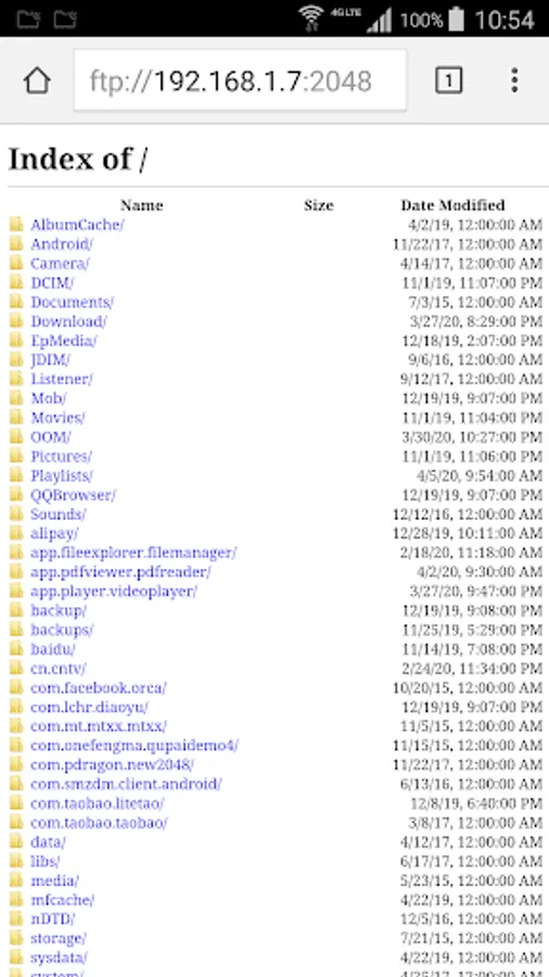 Create a ftp server on your phone. Explore your phone files from browser or other ftp client.