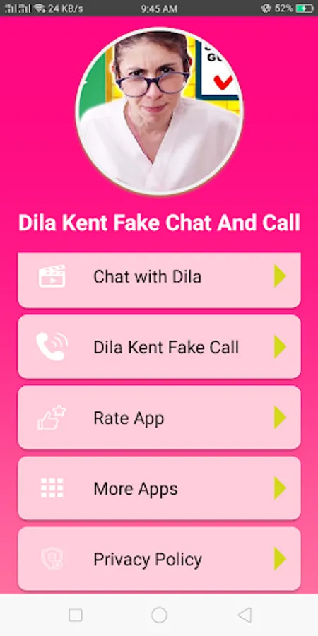 Lets surprised your friends & get a fake call from different dila characters . With the joke application you can simulate a fake video call by set the timer. With fake chat you can easily make a fake messages with dila kent.