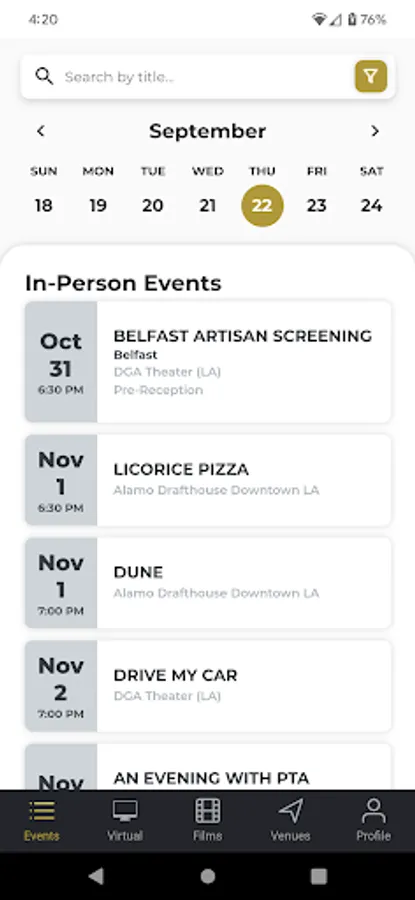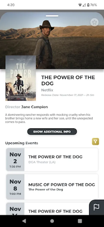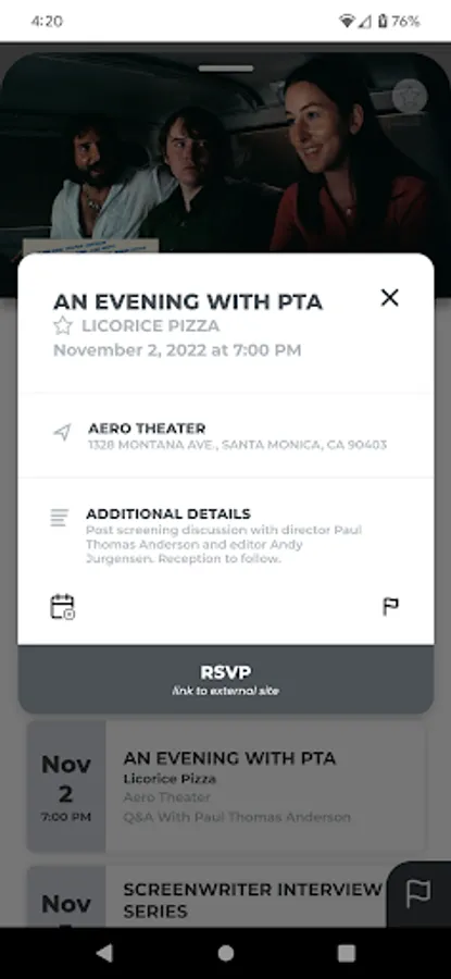 • Notifications for New Events - Get notified when a new screening is added for your favorited films, venues, or any new screening