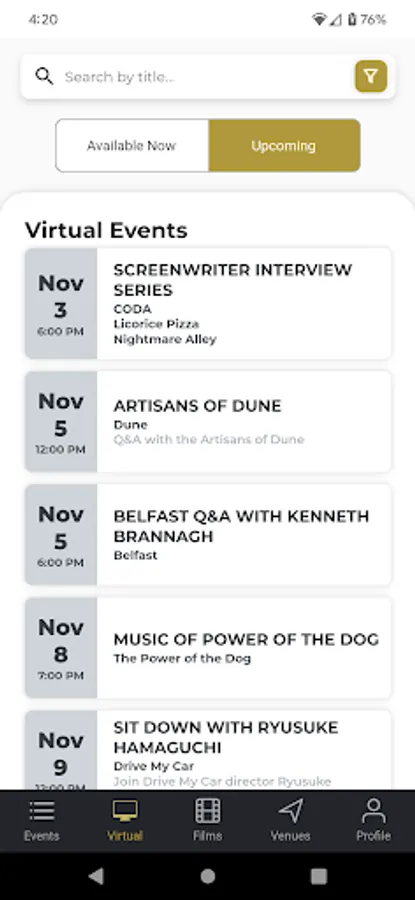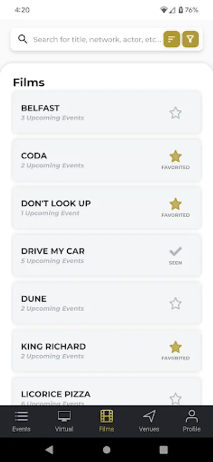 • Favorite Films and Venues - Mark programs as favorites and be alerted when new events are added