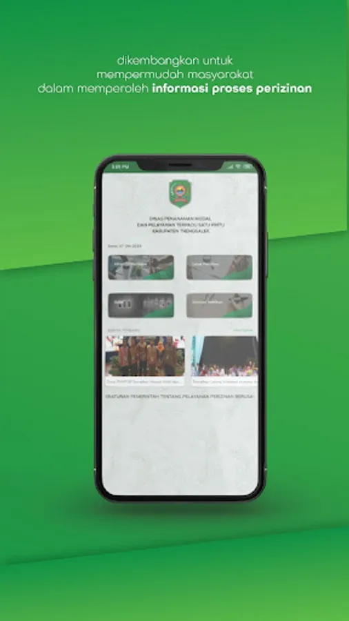 The mobile-based SIMPADU Trenggalek application was developed to facilitate the Trenggalek Regency community in obtaining information on the licensing process. In addition, SIMPADU Trenggalek is also equipped with a licensing tracking menu. In the licensing tracking menu, the public can find out about the status of the proposed licensing status.