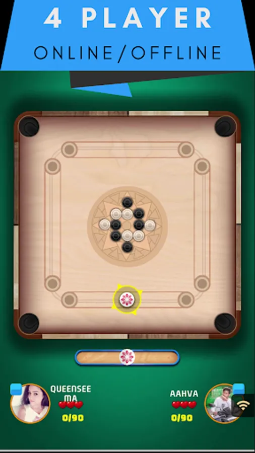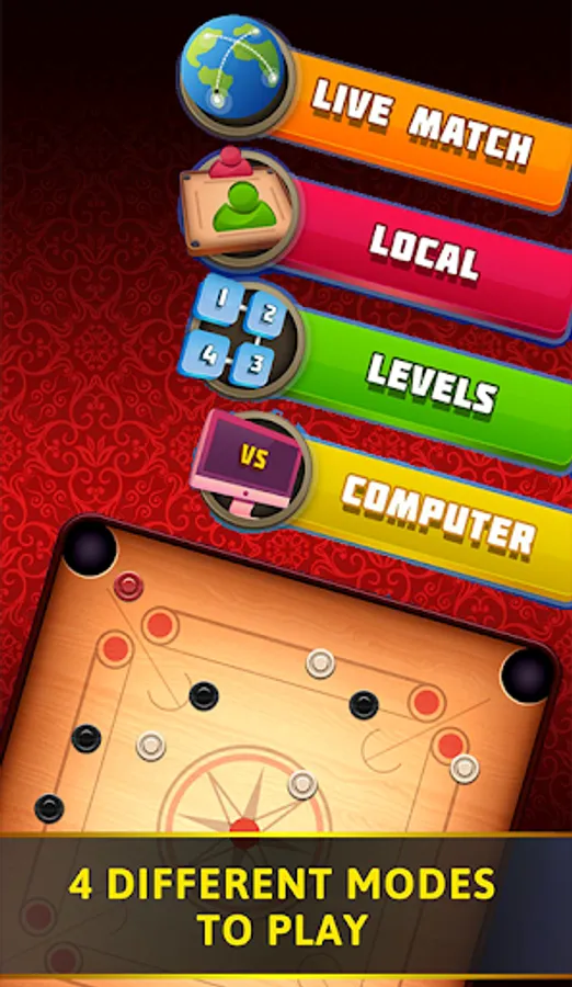 Carrom or Karrom or caram, an Indian version of pool disk or pool billiards or carom billiards or billiards City, play billiards games with cross platform multiplayer and pot all the coins before your opponent to win!