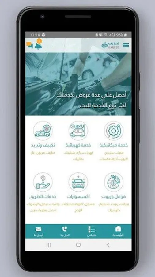 Through a nearby application you can raise the request for the service you need for your vehicle, whether it is mechanical, electrical, air conditioning and refrigeration service, oil and rubber, accessories for the car or even if you need to service your car in its place as a request for winch or roadside assistance.