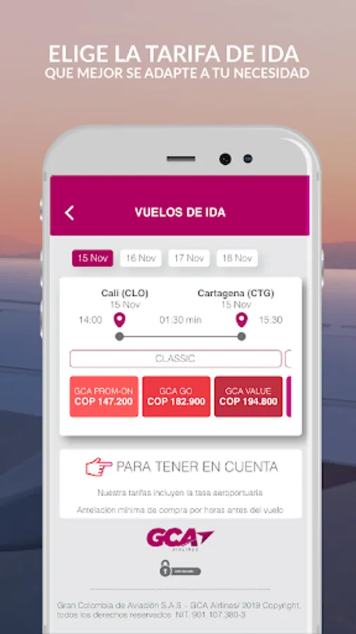 GCA App, we create an application with a design designed for our travelers to live the best experience and book their flights easier and faster.