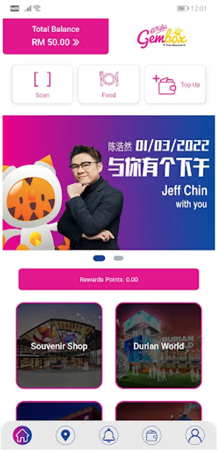Welcome to GEMBOX, the Malaysia WOWdest Symbolic Marketplace. GEMBOX is a must-visit tourist attraction in Malaysia with over 700 retail stores consists of all elements in Malaysia inclusive of F&B, cultural products, handicrafts and etc. GEMBOX Mobile App is a digital companion for shoppers in this cashless marketplace designed to allow shoppers and merchant to perform transaction in GEMBOX.