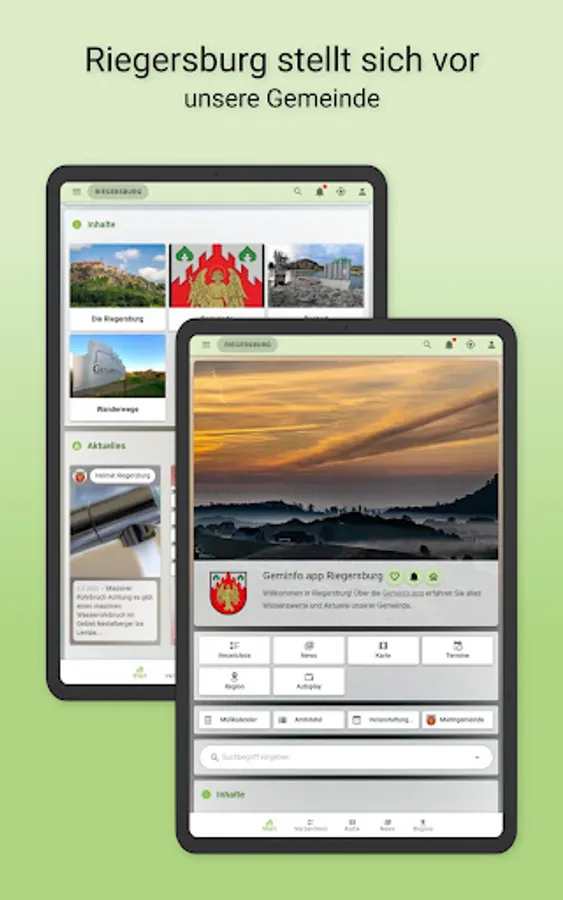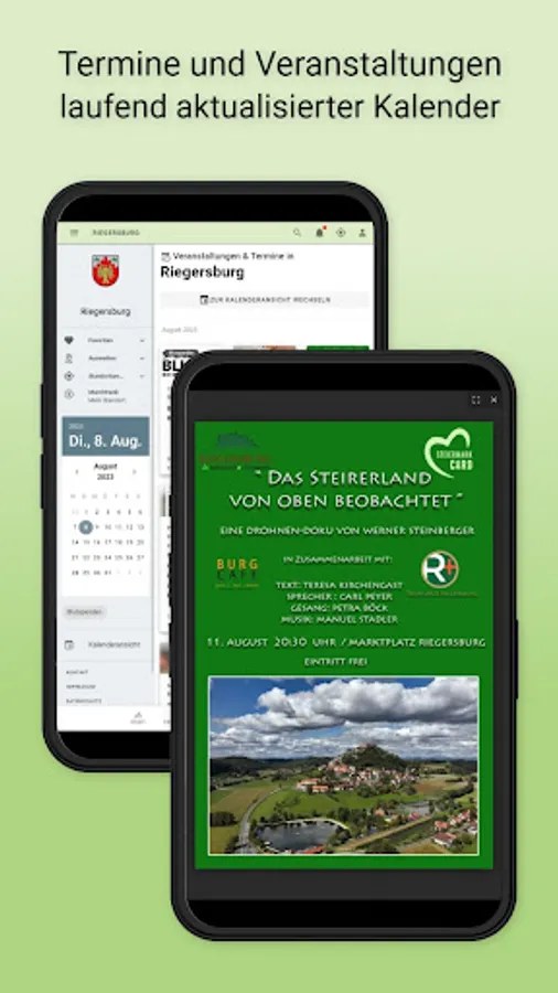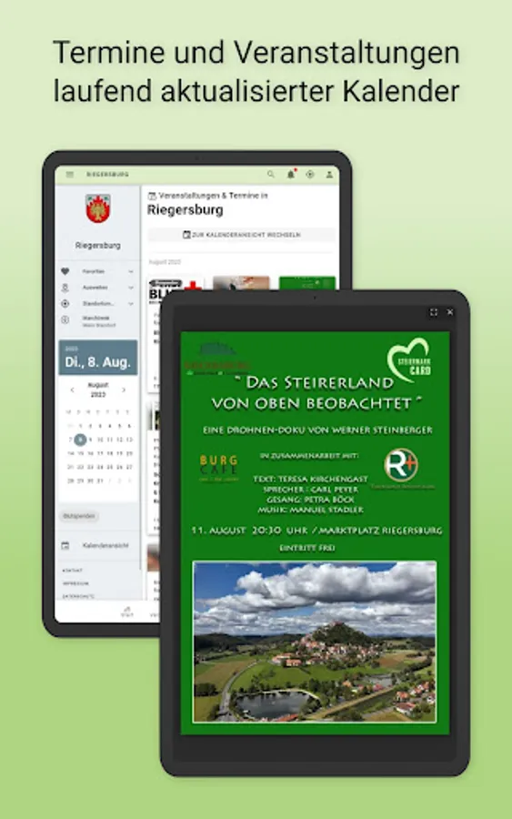 The Geminfo.app is used to collect and process current and local information on the economy, clubs, direct marketing, etc. in Riegersburg. In addition, community news, events and dates can be called up.