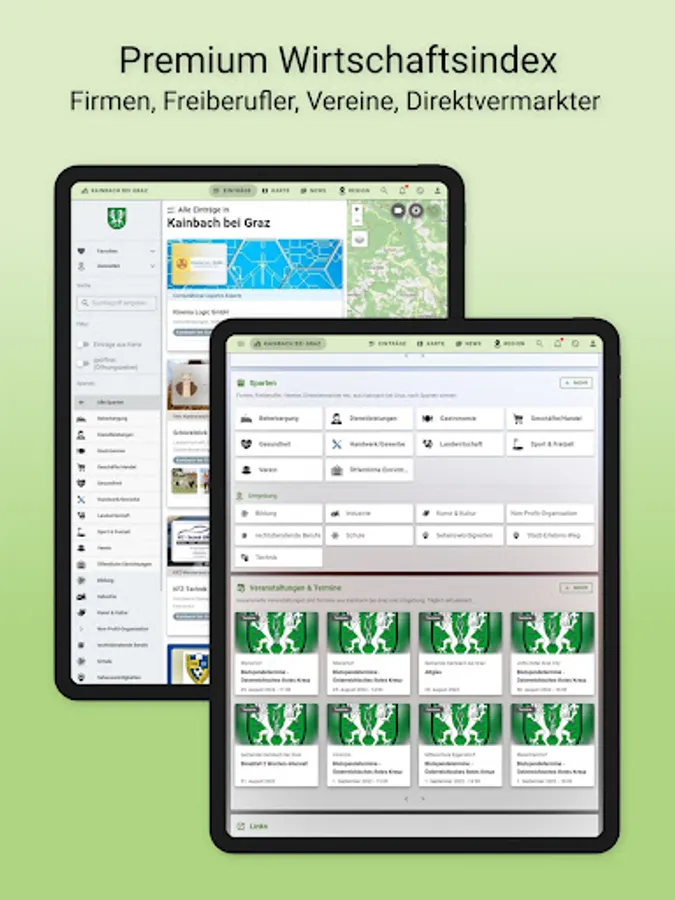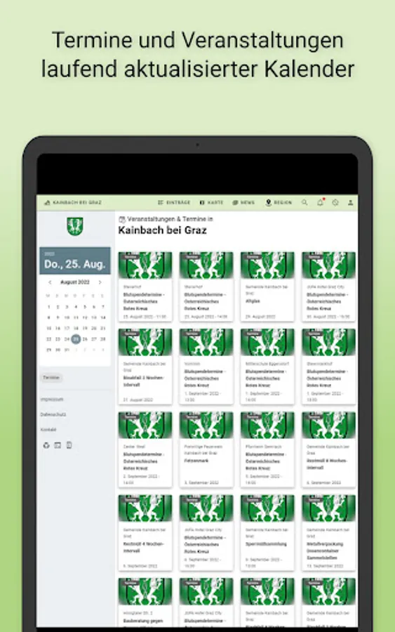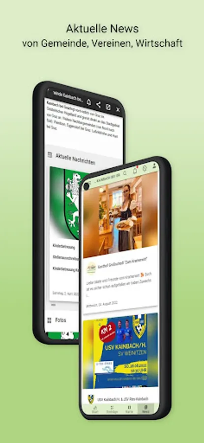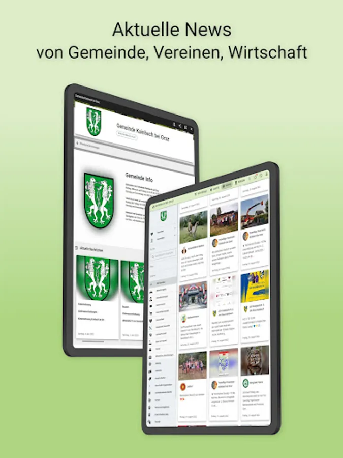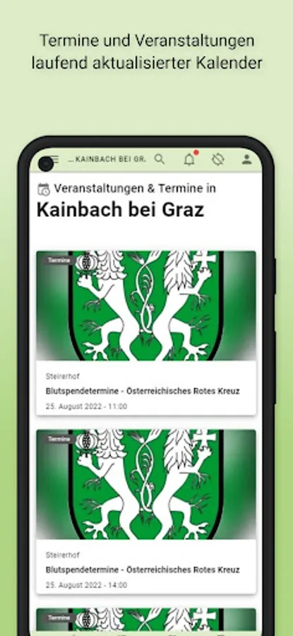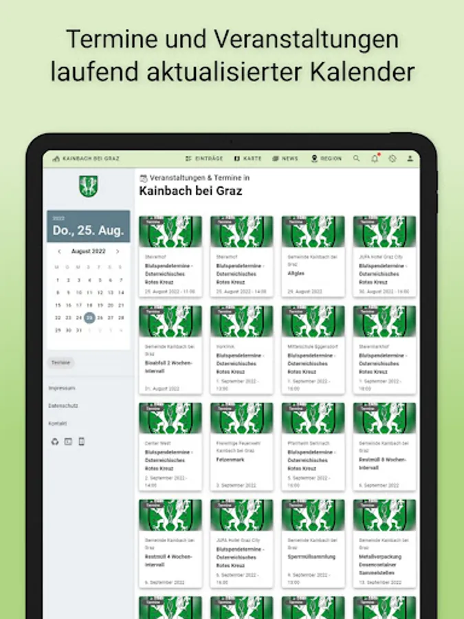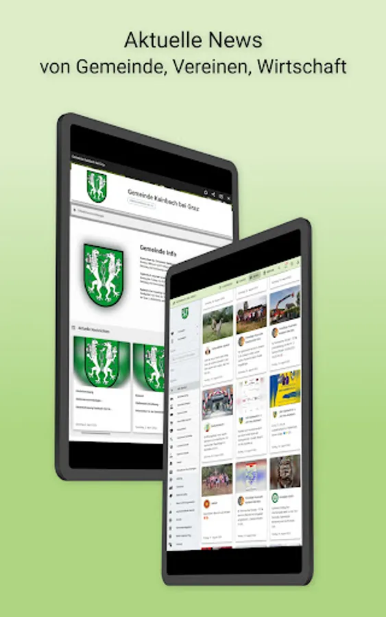 The Geminfo.app collects and processes current and local information on the economy, clubs, direct marketing, etc. in Kainbach. In addition, community news, events and dates can be called up.