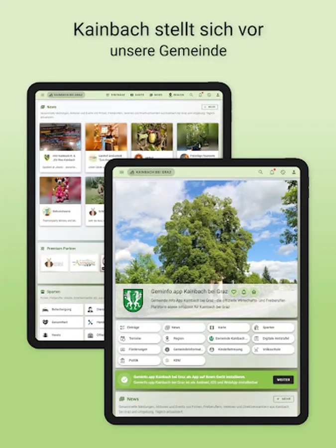 Geminfo.app Kainbach near Graz - the official community app as well as business and freelancer platform for Kainbach (Graz-Surroundings district).