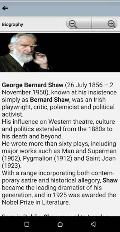 George Bernard Shaw (26 July 1856 – 2 November 1950), known at his insistence simply as Bernard Shaw, was an Irish playwright, critic, polemicist and political activist.